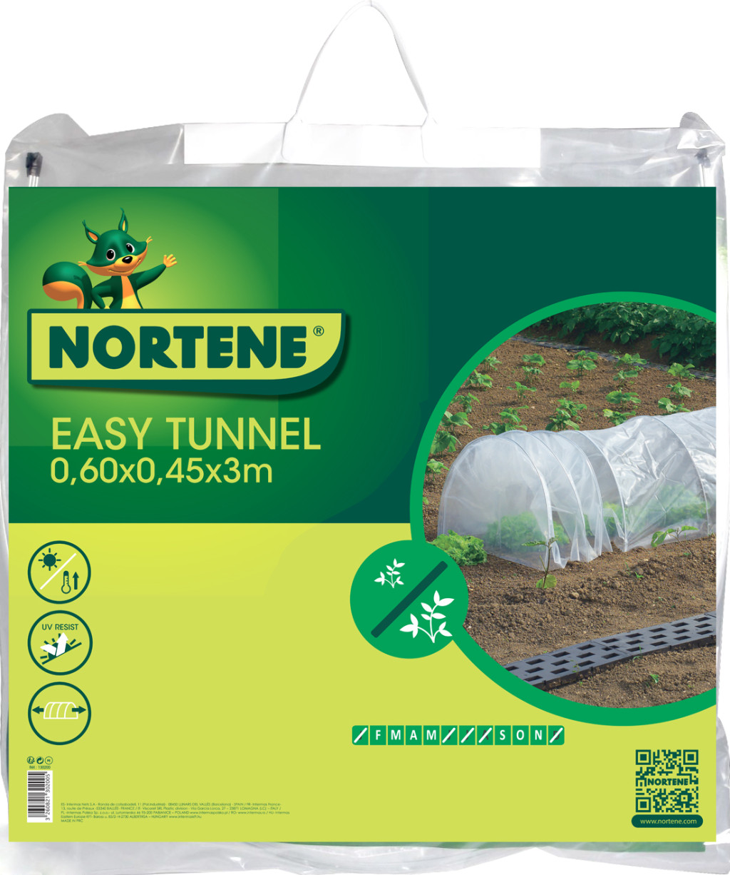 Egyszerű megoldást keres a gyümölcsök és zöldségek növekedésének gyorsítására? A Nortene az EASY TUNNEL fóliaalagutat kínálja: átlátszó fólia, acél bordákkal.