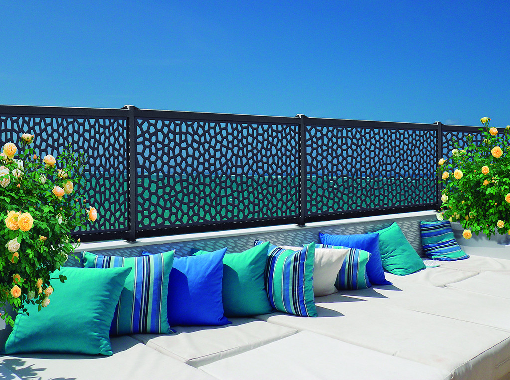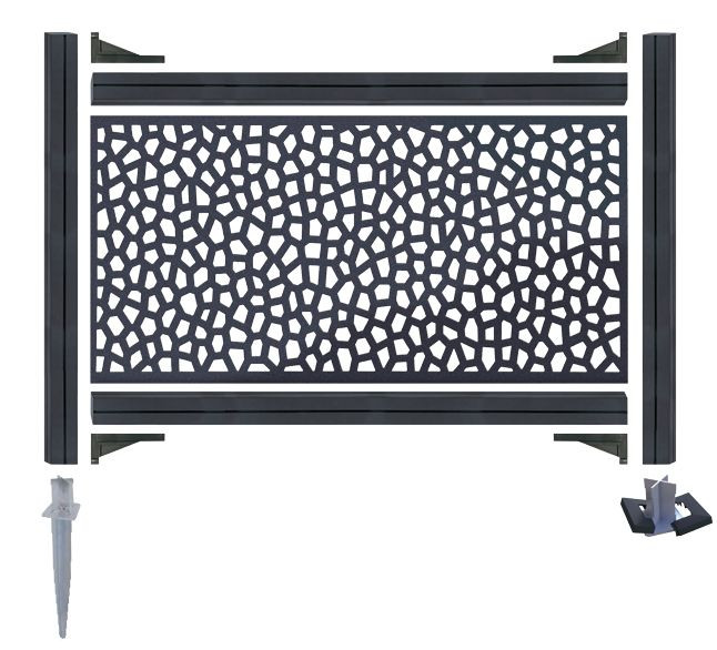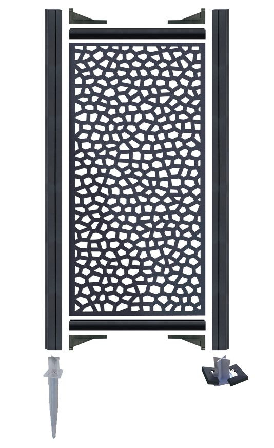 Mozaik mintás, modern megjelenésű PP panel, mely alkalmazható térelválasztóként vagy futtatóként is. Időjárásálló, fémes hatású, diszkréten illeszkedik mind a kültéri, mind a beltéri dekorációkhoz.