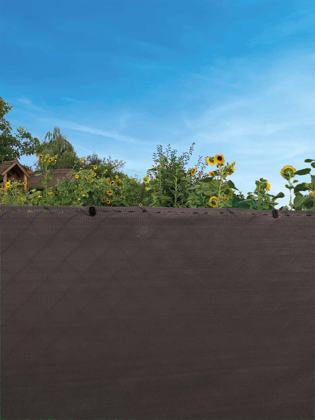 Recynet szőtt árnyékoló háló gomblyukakkal, 1,5 m x 10 m, barna