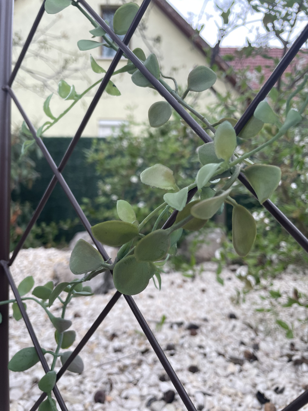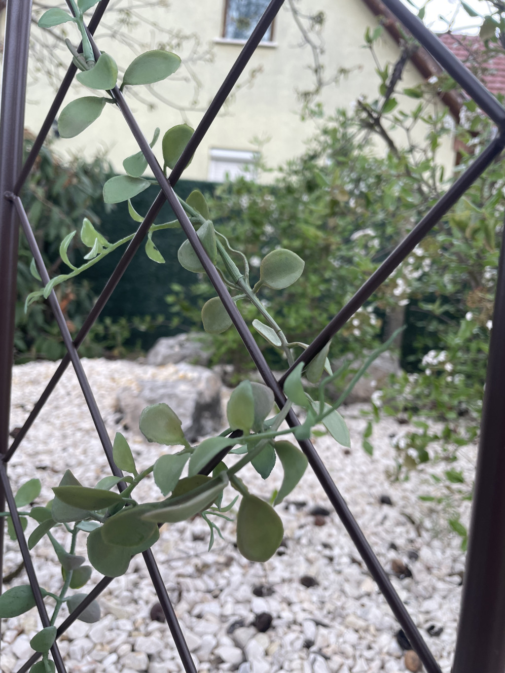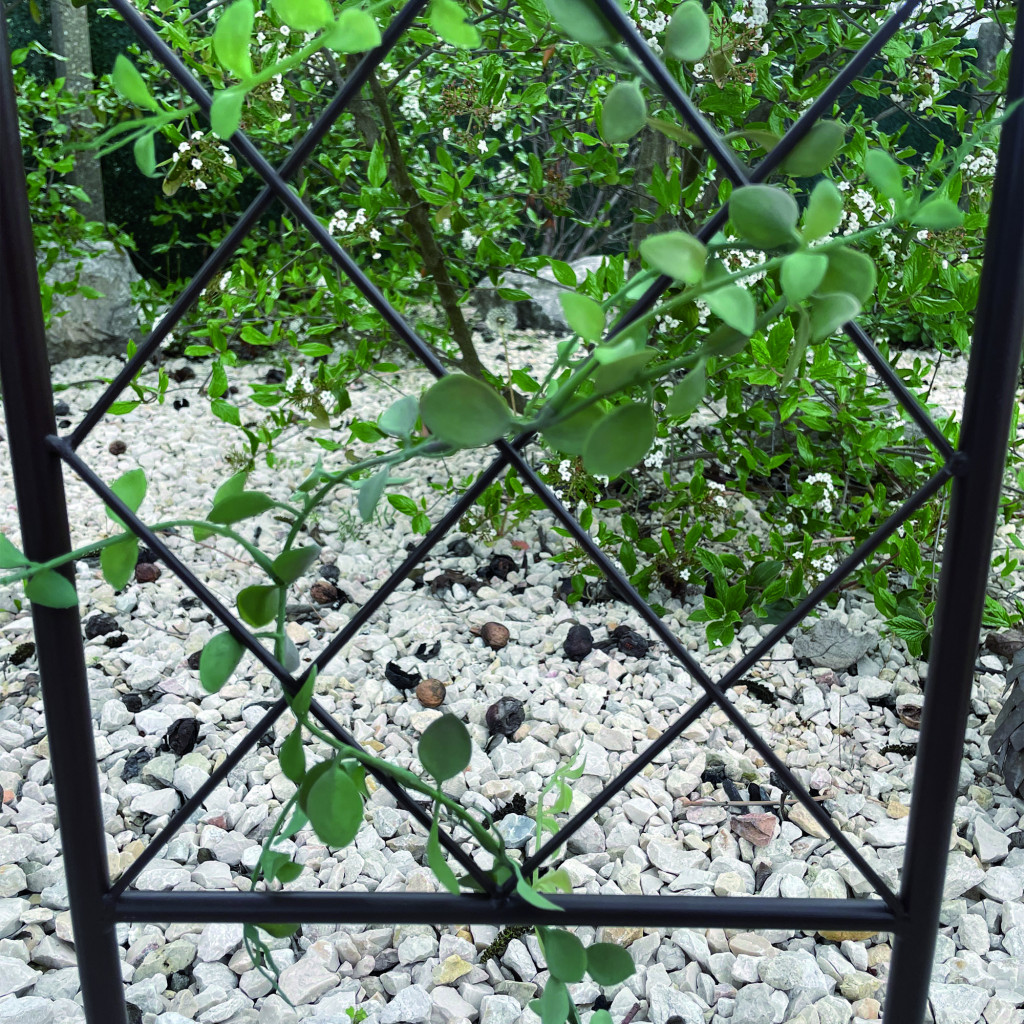 Közvetlenül földbe szúrható, fémből készült, rácsozott támfal futónövények számára.