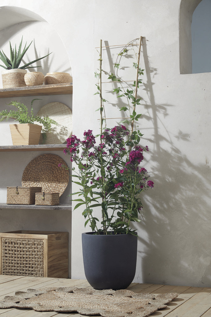 • A bambuszból készült növénylétrák stílusos és elegáns kiegészítők lehetnek a kertekben, teraszokon vagy akár a belső térben is.