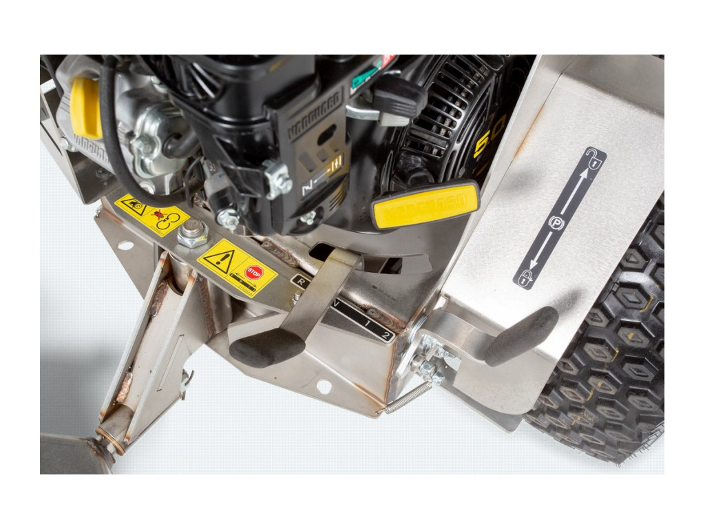 Az alacsony súlypontnak köszönhetően kíváló teljesítményt nyújt akár lejtős területeken történő haladáskor is. A 100%-ban rozsdamentes acélból készült váz, az egyedülálló csuklós kialakítás tökéletesen ellenáll a korrozív granulátumoknak is.