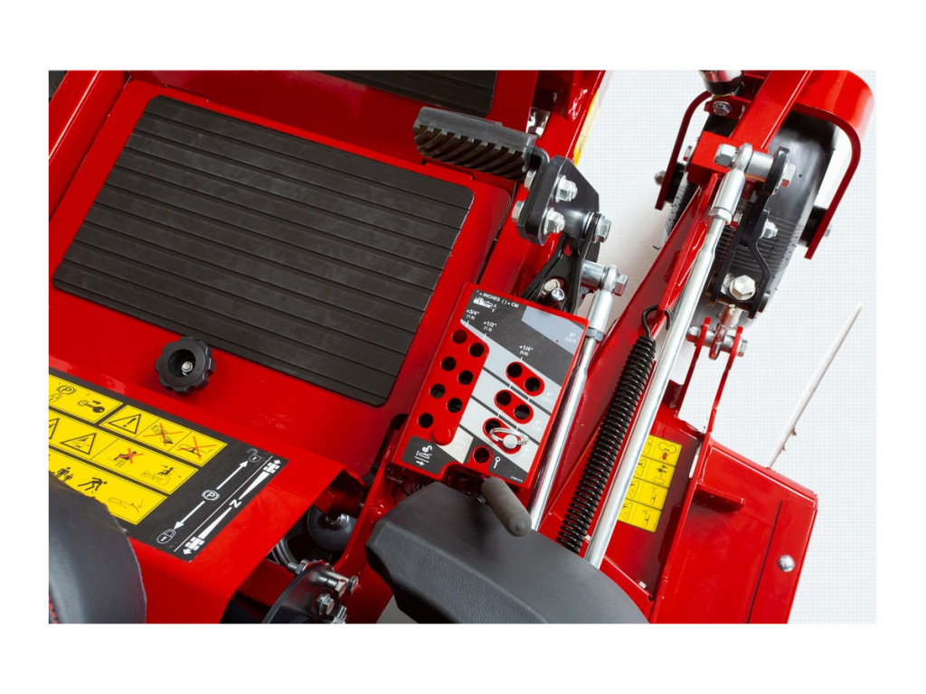 • Kapcsolók / Biztonsági eszközök: Független (jobb és bal) előre és hátra irányítókarral, gépkezelő jelenlét érzékelővel a vezetőülésben, PTO kuplung biztonsági kapcsoló, üresjárati és rögzítőfék biztonsági áramkör