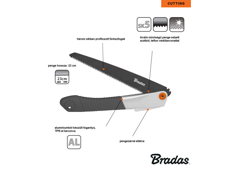 • Kiváló minőségű, SK5 edzett acélból készült penge