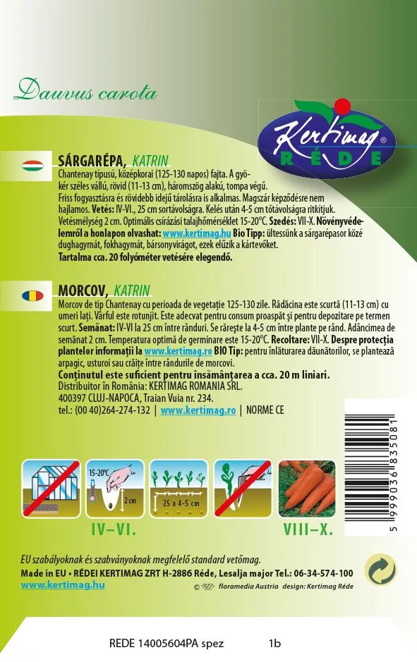 • Vetés: IV-VI. hónapban, 2 cm mélységbe, egymástól 25 cm x 3-4 cm távolságba,