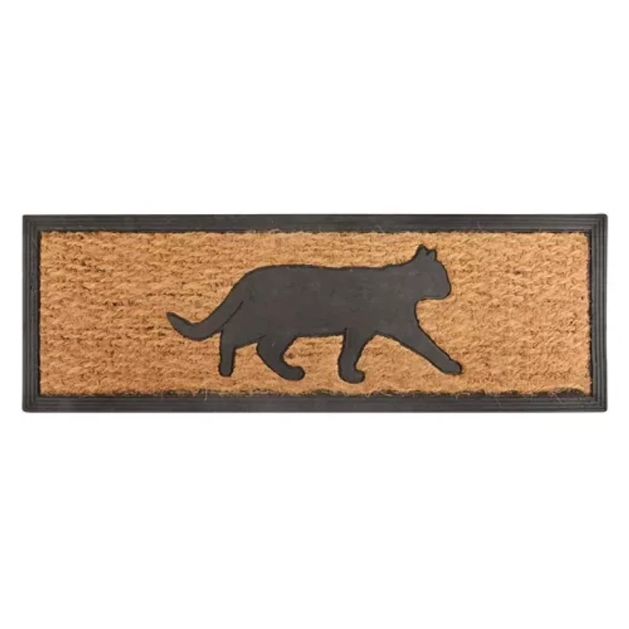Kókuszrost és gumi lábtörlő, cicás, 75 cm x 25 cm
