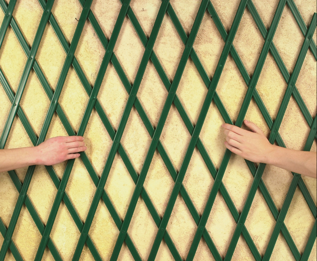 Természetes hatású, műanyagból készült térelválasztó vagy futtató. Harmonikaszerűen állítható apácarács. A szereléshez szükséges kiegészítőket tartalmazza.