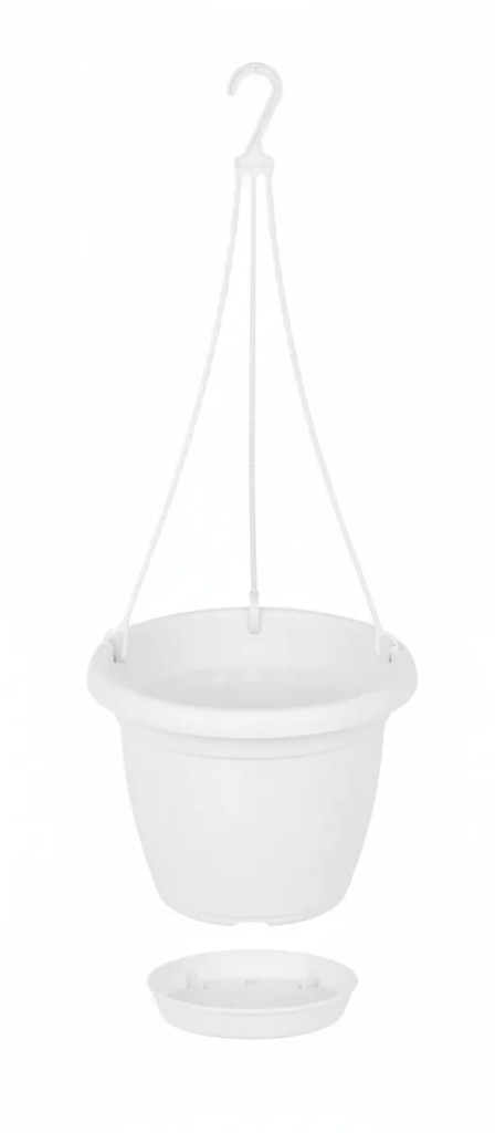 Az akasztós műanyag kaspó praktikus és dekoratív megoldást kínál virágok és dísznövények elhelyezésére. Függesztett kialakításának köszönhetően ideális erkélyekre, teraszokra és beltéri használatra egyaránt.