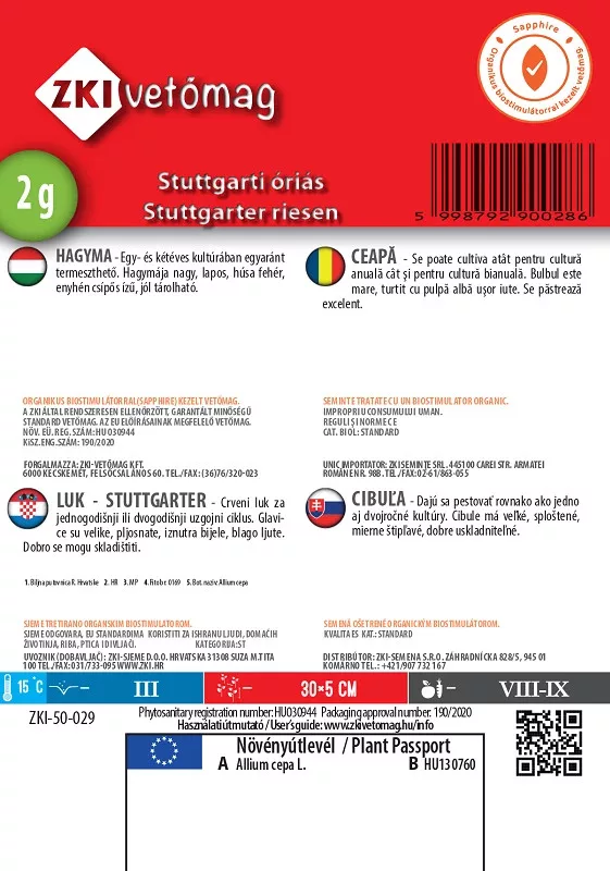 Stuttgarti vöröshagyma vetőmag, 2 g