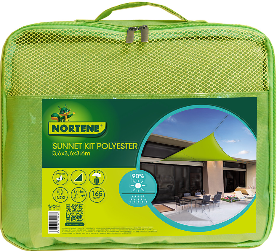 Sun-Net Kit poliészter napvitorla, 3,6 x 3,6 x 3,6 m, zöld