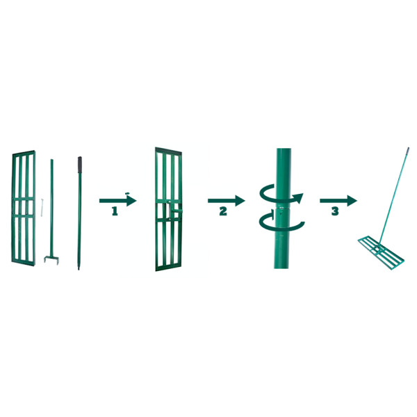 Nagy méretű gyepsimító gereblye, gyorsan és hatékonyan elegyengeti a talajt.  Alkalmas különféle terepekre, például pázsitokra, kertekre, a homok, talaj, komposzt és moha kiegyenlítésére.