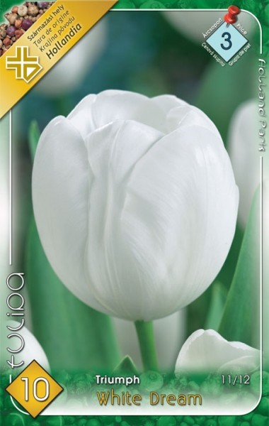 A White Dream Triumph tulipán hófehér, klasszikus formájú virágai tavasz elején nyílnak, ideális évelőágyba, virágszegélybe vagy vágott-virágként. Napos és félárnyékos helyen egyaránt jól fejlődik, teljesen télálló. Ültetése VIII–X. hónapban javasolt, virágzása IV. hónapban várható. Elegancia és tiszta szín minden kertbe.